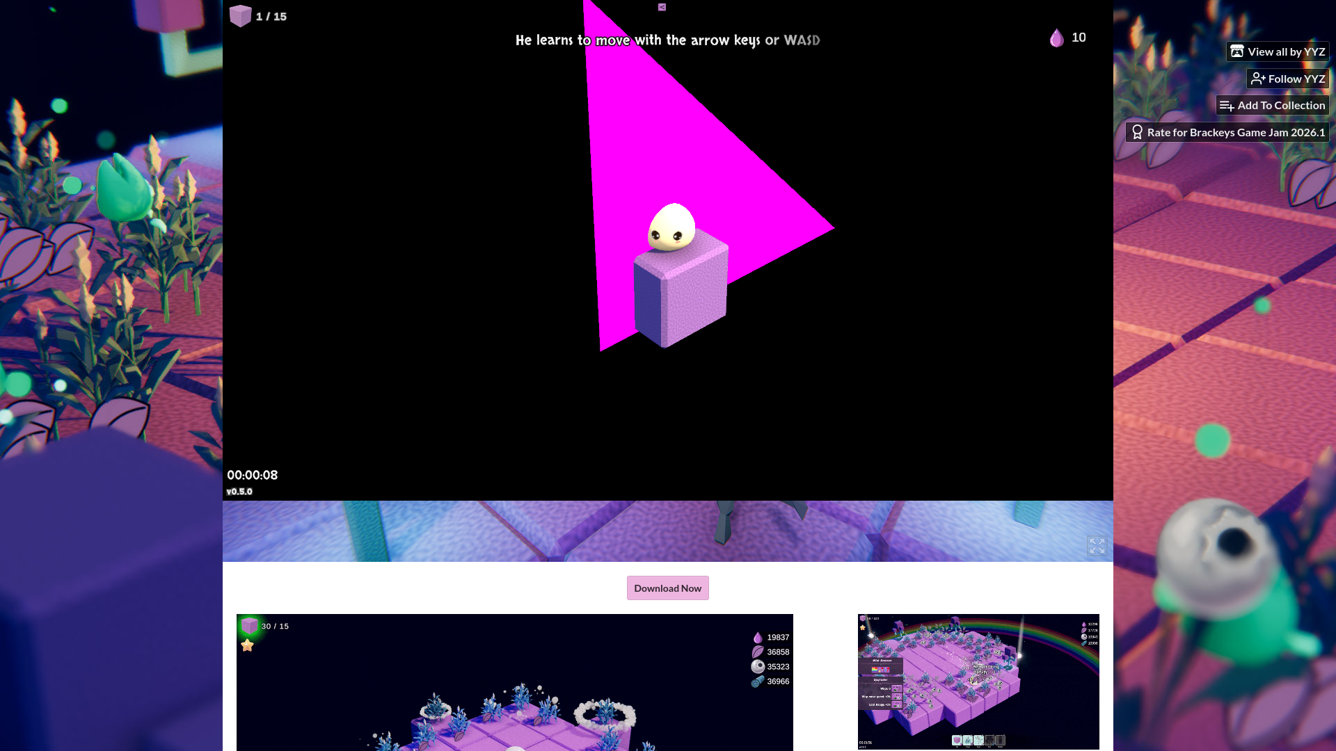 Super cozy and cute and crazy polished for the time constraint. Love the mechanic to make it replayable and give persistent bonuses. I also think it was just the right length for a game jam game -- long enough to be fun and get the experience across and leave you wanting more. Super great work! :)
