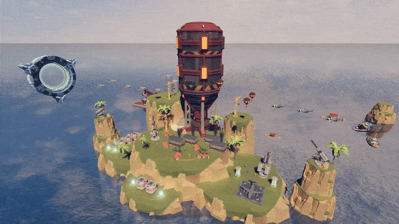 - Islands in the distance, can build unique buildings, or meet NPCs, or scenarios