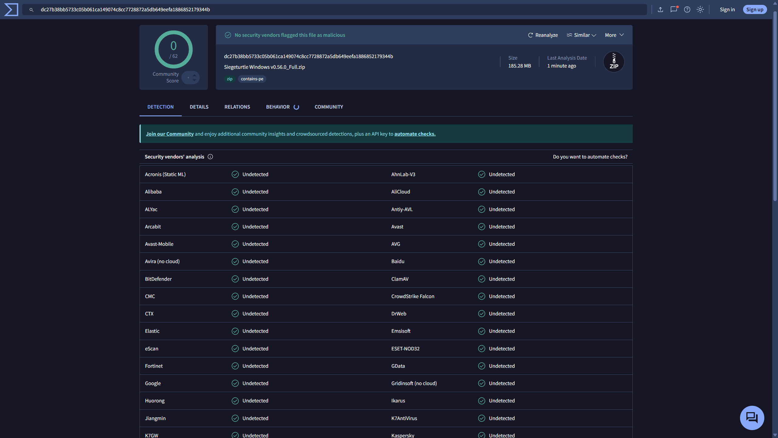 Update: To be absolutely certain and treat this seriously, I ran the previous version (v0.55) as well as v0.56 through VirusTotal, an anti-virus scanner.
