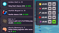 v0.21 is released! It adds two new currencies: Dull Pearl and Shiny Pearl , which can be obtained from fishing. You will need to acquire the Shell upgrades. The shiny pearl is extremely rare and an be...